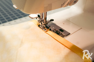 Simply measure and cut to your desired size. At the bottom of the triangle, you will need to measure and cut two straight lines to the end of the bandanna to make the triangle shape. Next, you will want to fold and pin your edges to make a crisp edge. We prefer to have 1/4" seam.